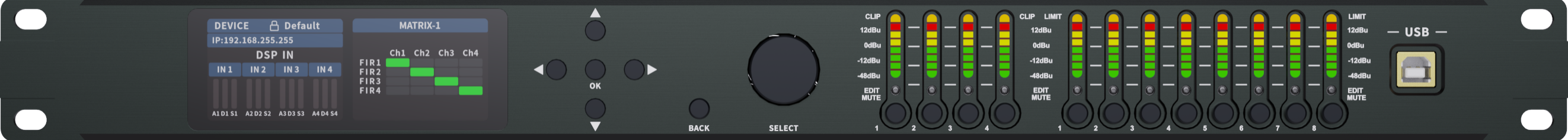 Specifications | 4-in 8-out digital audio processor(New) Optional Dante network digital audio input | Background noise | 20Hz-20kHz,A-wt,-93dBu |
